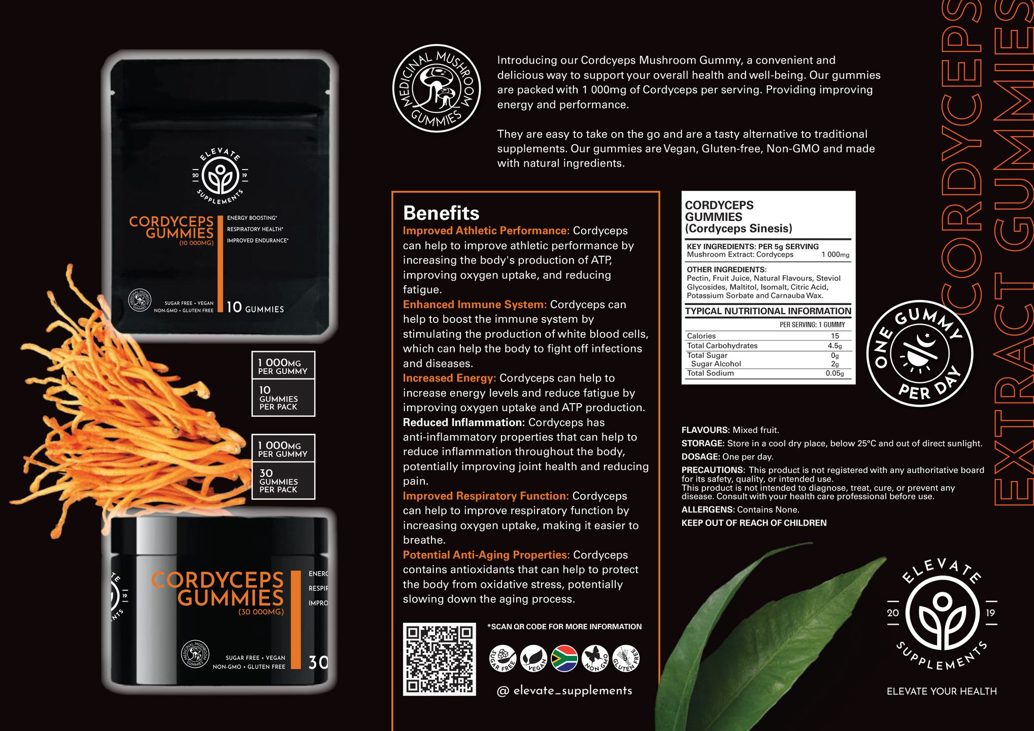 Introducing our Cordcyeps Mushroom Gummy, a convenient and delicious way to support your overall health and well-being. Our gummies are packed 1000mg of Cordyceps per serving. Providing improving energy and performance.