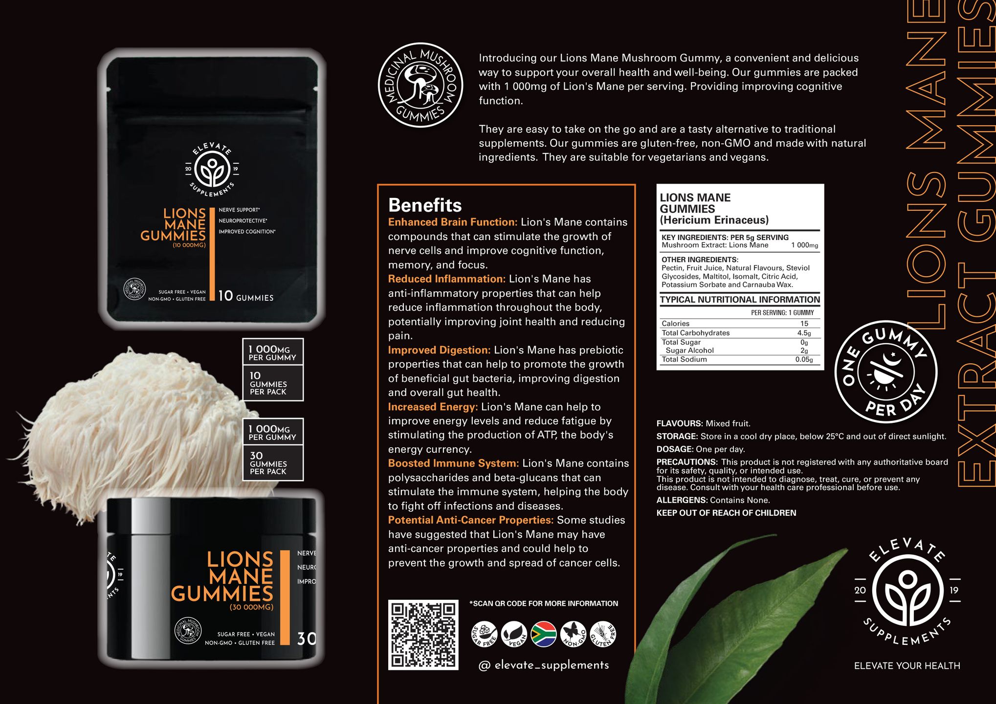 Introducing our Lions Mane Mushroom Gummy, a convenient and delicious way to support your overall health and well-being. Our gummies are packed 1000mg of Lions mane per serving. Providing improving cognitive function.