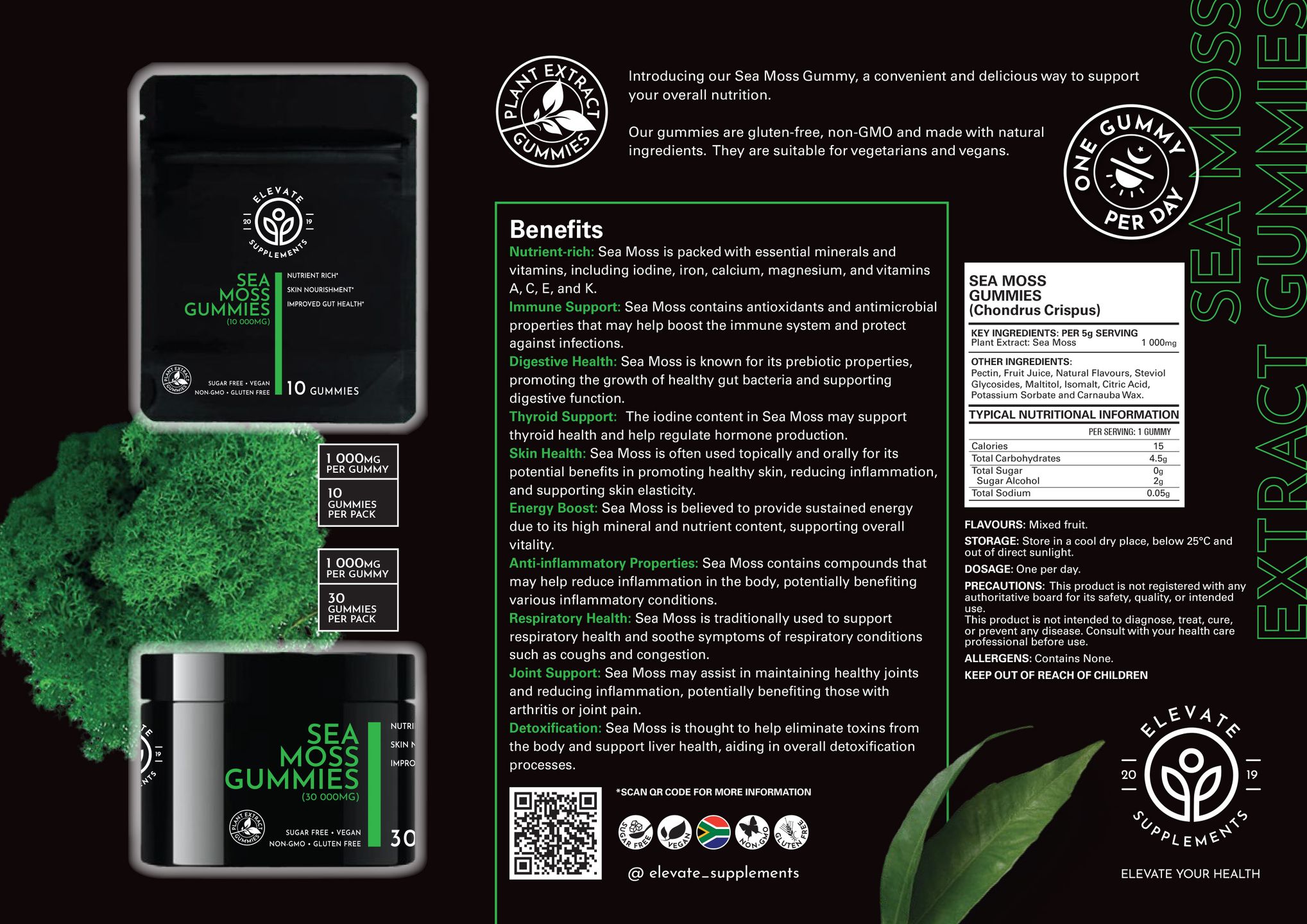 - Nutrient-rich: Sea Moss is packed with essential minerals and vitamins, including iodine, iron, calcium, magnesium, and vitamins A, C, E, and K.